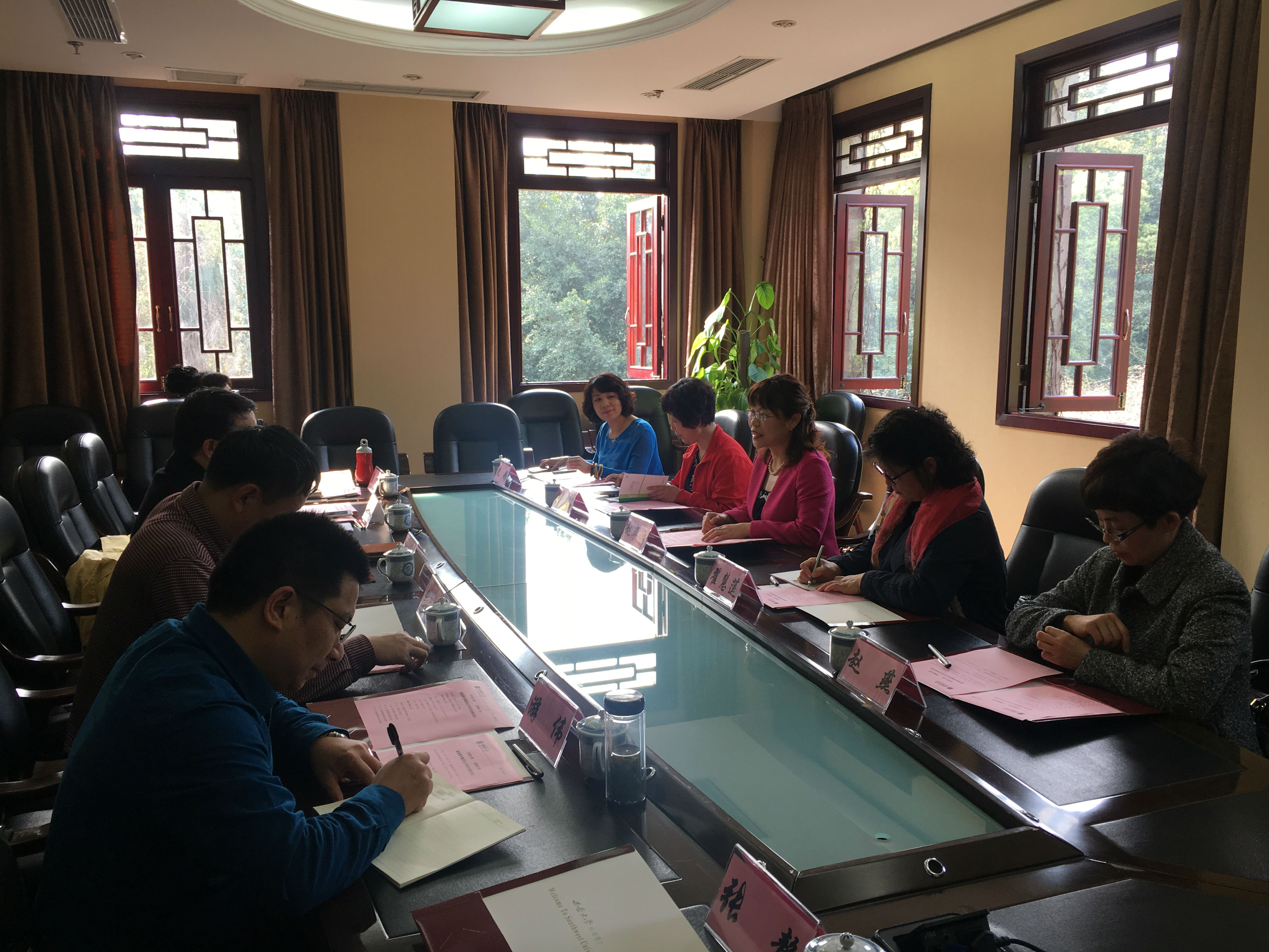 2018年3月14日,天津大学附属小学幼儿园校医院党委书记赵翠云、资产经营公司党委书记翟慧莲、附属小学幼儿园校医院党委办公室主任王端、附属小学校长赵燕、幼儿园园长沈彤等领导一行赴西南大学基础教育集团进行调研,并与集团董事长、总经理邹顺康,西南大学资产经营公司副总经理王殊,幼儿园园长宋武,集团副总经理游伟、陈红,总经理助理张静等进行座谈交流。
